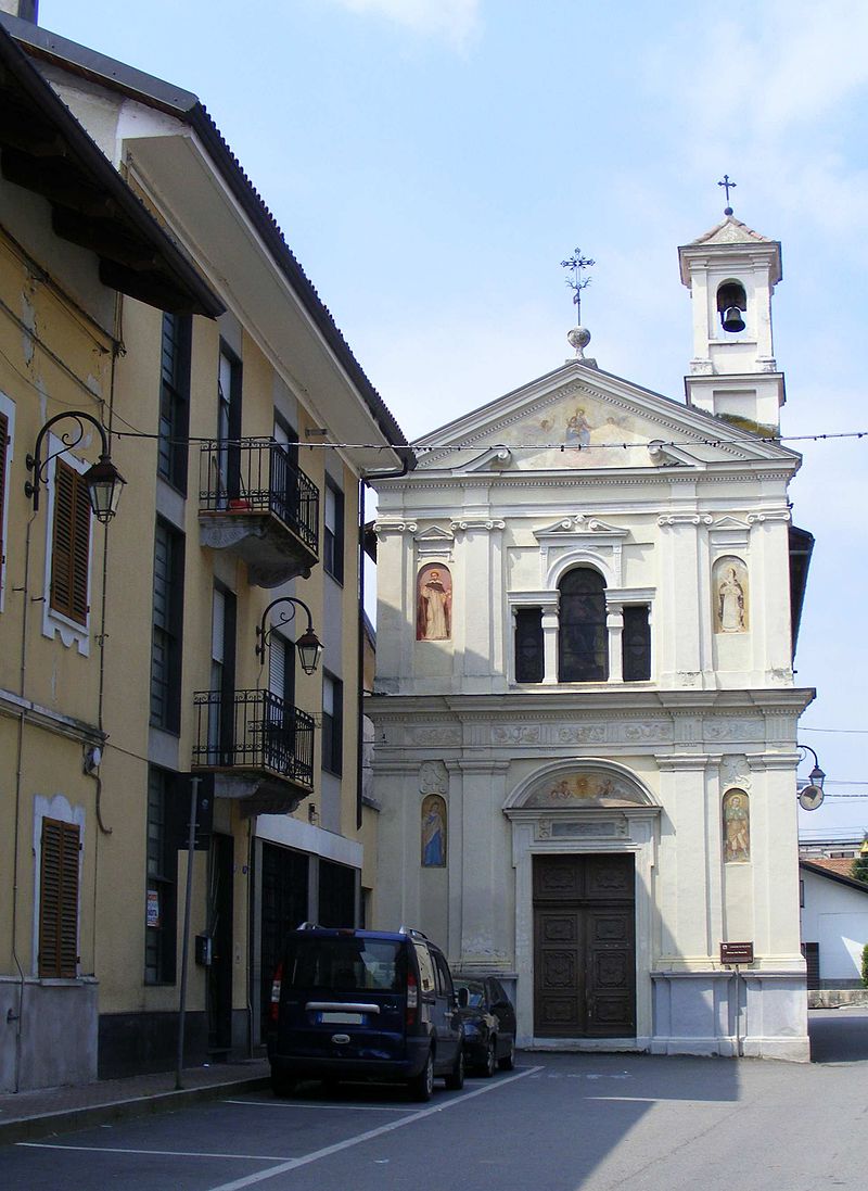 la chiesa è la più antica di Feletto ancora funzionante. Venne edificata nel 1631 alla fine dell'epidemia di peste del 1630, come voto fatto dalla popolazione. Per rendere indelebile nel tempo il motivo della sua edificazione venne posta una targa in latino che recita: "Lue soeviente, anno MDCXXXI populus inter multarum calamitatum spinas hac rosam posuit" (trad. "Mentre imperversa la peste nell'anno 1631 il popolo tra le spine di molte calamità ha posto questa rosa"). Tale scritta che si può ancora scorgere sulla facciata. Questa chiesetta era stata posta poco al di fuori dell'abitato, tanto da venir chiamata "chiesa del vallino", ma col passare del tempo è stata inglobata nel centro del paese.